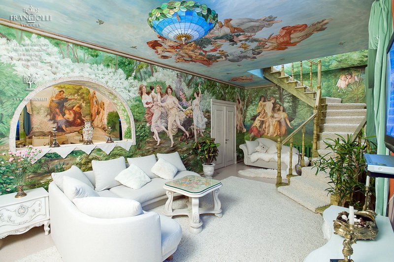 Оставить комментарийРозпись на стенах своими руками дело забавное, но трудоемкое. Как по мне, если ты не художник, то рисовать на стенах ты можешь в детской, в спальне. А для гостинной, нужно нанять специалиста. Через трафарет и с помошью проекта сможет каждый что-то нарисовать, но (посмотрите на фото2) игра теней и света подвластна не каждому.