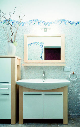 Говоря о цветовых решениях, можно отметить, что встречаются и строгая монохромность, и комбинации контрастных цветов. По-прежнему актуально сочетание гладких поверхностей с фактурными, плиток правильной формы с криволинейными. Популярна керамическая плитка, имитирующая камень, дерево, металл, морскую гальку, трикотаж, кожу, гобелен и мешковину. Что касается рисунка, то он может быть самым разнообразным: растительным, абстрактным, геометрическим, мелким и крупным.