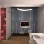 Смелая по цветам и контрастам подростковая для мальчика организована с учетом возрастных потребностей и в духе времени. Основной цвет – белый, даже несмотря на то, что хозяин комнаты подросток, рабочая мебель тоже выбрана белая. Ниша под видео- и аудиотехнику декорирована под перфорацию. А боковая стенка шкафа приспособлена под стеллажи для книг – яркокрасная с подсветкой. Санузел при детской оформлен в контрастной цветовой гамме с использованием панно индивидуального изготовления – колесо миллениум.