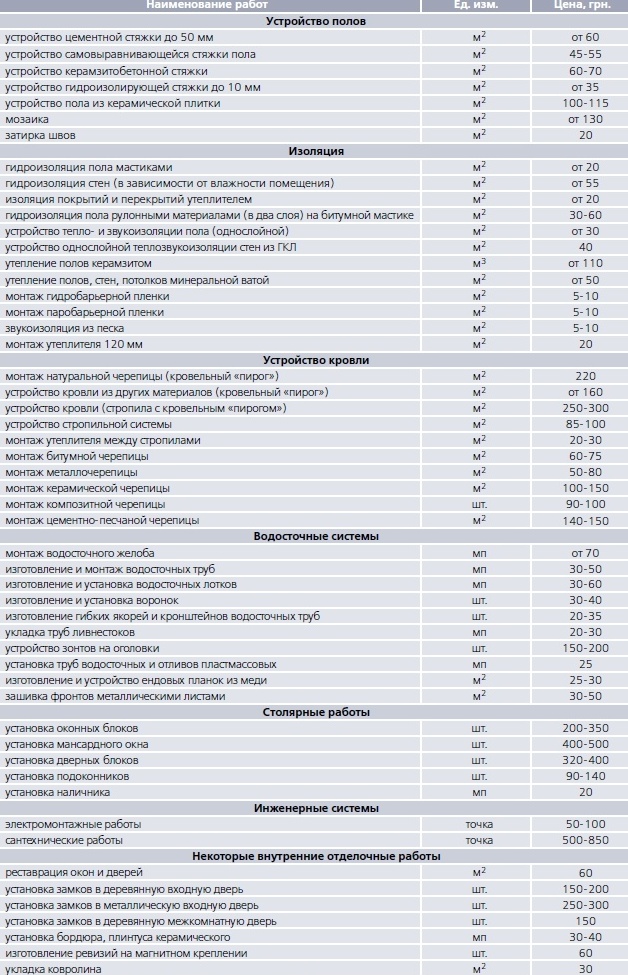 Строительство нового дома – задание непростое. Один из главных вопросов, волнующих застройщика, это сумма необходимых для стройки денег. В нижеприведенной таблице указаны примерные расценки строительных компаний на основные виды общестроительных работ.