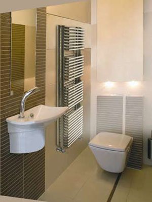 Водяные полотенцесушители наиболее распространенная конструкция в наших ванных комнатах. Водяные полотенцесушители наиболее популярны, так как они самые недорогие и практичные. Их подключают к циркуляционной трубопроводной системе горячего водоснабжения (ГВС). Поскольку они эксплуатируются "без отпуска", практически круглый год, к ним предъявляются высокие требования надежности, прочности и долголетия. Ведь работать устройству придется в экстремальных условиях: высокая температура, сильное рабочее давление, гидравлические удары из–за неисправных вентилей и заслонок, образующаяся накипь на внутренних стенках труб. Вот в таких условиях ставится задача– максимум — прослужить 30 лет. По внешнему виду их разделяют на две группы: U-образные и М-образные. Полотенцесушители 1-й группы изготавливаются из очень толстой черной, оцинкованной или нержавеющей стали, которые характеризуются высокой безопасностью использования в системах горячего водоснабжения. Эта группы отличается простотой монтажа, высокой надежностью и вполне доступна по цене. 2-я группа полотенцесушителей — дизайн-радиаторы — делятся на 4 подгруппы: а) приборы из цветных металлов (латунь, медь, алюминий); б) приборы из черной стали с внутренним антикоррозийным покрытием; в) приборы из нержавеющей стали; г) приборы из черной стали с теплообменником (двухконтурные).